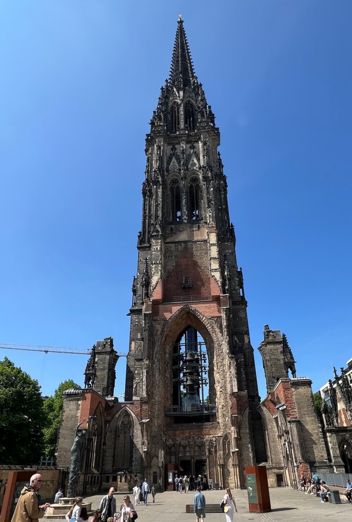 During the Second World War, the steeple’s height of 147.3 meters served as an orientation point for allied bombing pilots approaching Hamburg. Heavily destroyed in the summer of 1943 the church was not rebuilt after the war. The steeple survived without major damage and was declared a memorial.