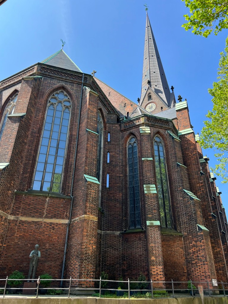 St Petri church, named for the apostle Petrus, was built in the 11th century and is Hamburg’s oldest church. During the Great Fire of 1842 the Gothic church was entirely consumed by the flames then reconstructed seven years later. During WWll, in July of 1943, the air attacks of Operation Gomorrah cuased yet another massive fire in the city. Fortunately, this time the tower wasn’t seriously damaged though nearly half of the city was destroyed.