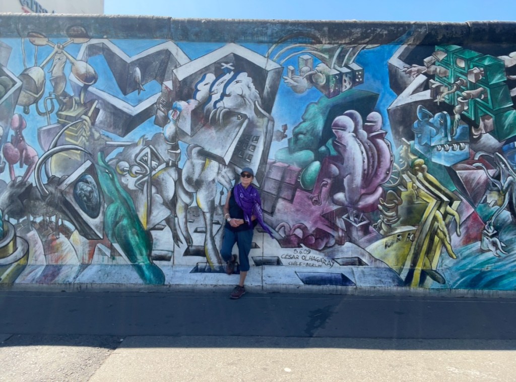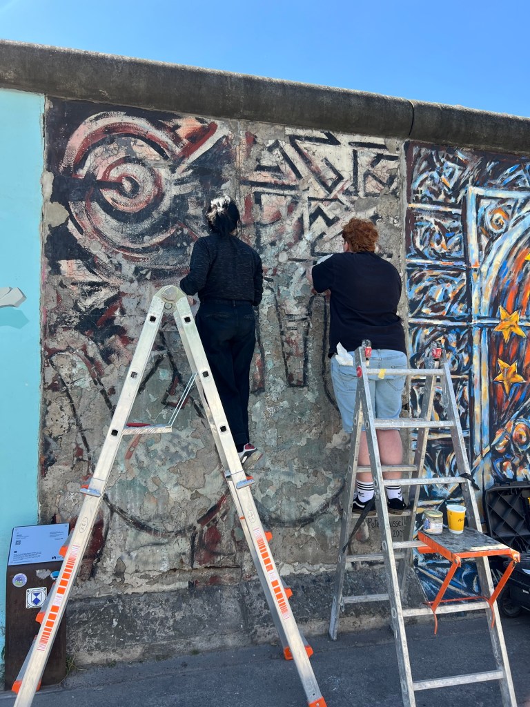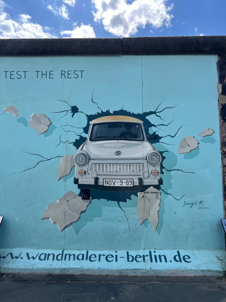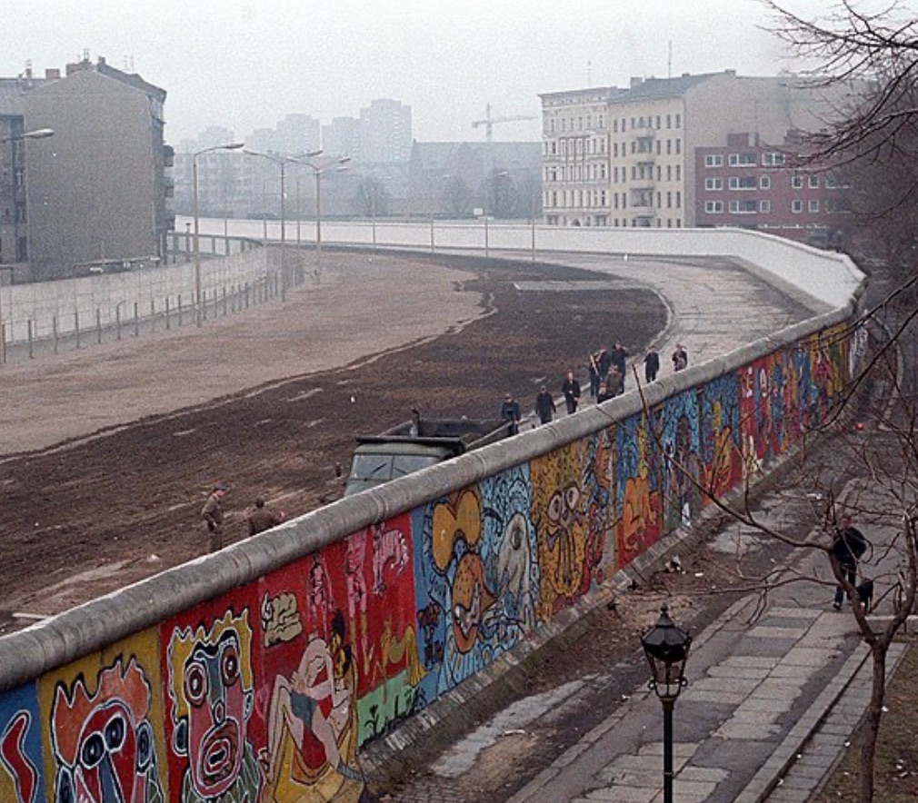 A few weeks after the Wall fell in November 1989 West Berliner David Monty and East Berliner Heike Stephan announced thier idea to turn the Berlin Wall into the longest gallery in the world. The GDR government approved the painting action and assigned them the 1.3 km long wall in Muhlenstrasse. 118 artists from 21 countries responded to the call and the opening of the East Side Gallery was celebrated with a big party on 28 September 1990. With their messages and comments the artists raised a monument to the joy at seeing the Wall come down and the Cold War overcome, yet some critical comments were also made. In the following years the Gallery was restored and changed several times but it still tell of the sense of new beginnings in 1990.