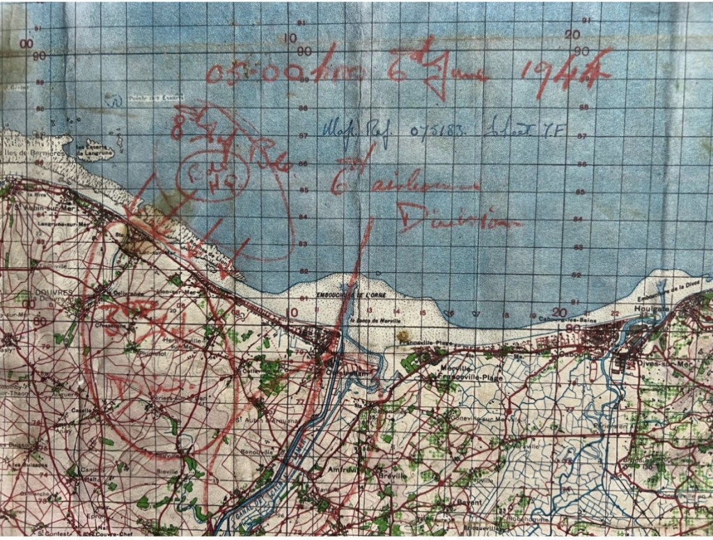 ‘As a glider pilot, my objective was a small corner of a particularly tiny field of rough pasture close to the Orne Bridge. If I overshot, I would crush us all against a 14 foot high embankment – if I undershot i would destroy my seven tons of powerless aircraft and its human cargo on a belt of 50 foot high trees. There was simply no room for error. …It was absolutely vital that we had the maximum surprise element so we were going to sneak in just after midnight, some six and a half hours before the seaborne invasion came ashore. …We’d met the Ox and Bucks lads a few days before and they were a very good bunch. However, on the night they arrived all blacked up, loaded with arms and ammunition, they looked a right bunch of cut-throats – I think I was more aftrad of them than I was of the Germans. …At about twenty to eleven …somebody fired the green flare, the engines started and one by one we got under way.’
