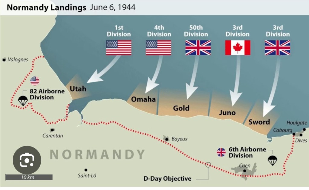 Shortly after midnight, on 6 June, over 18,000 well trained and highly skilled paratroopers and glider-borne infantry of the US 82nd and 101st Airborne Divisions and the British 6th Airborne Division were dropped into Normandy. The allied forces landed troops on Normandy beaches for the largest amphibious assault in History.