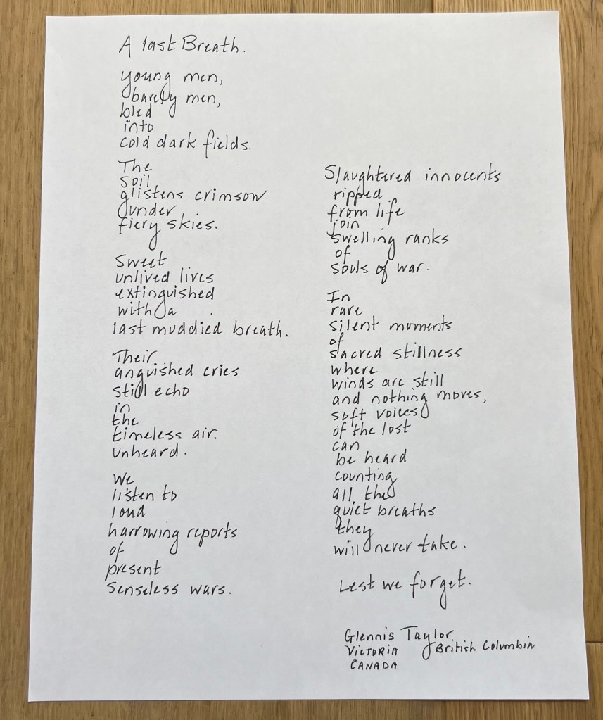 I am forever Grateful. I knelt down on the sands of Sword Beach to read this poem aloud written by cousin Glennis Taylor.