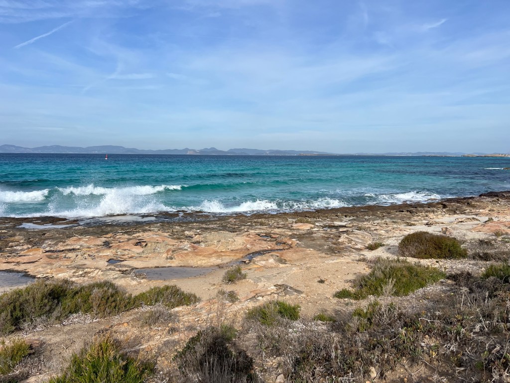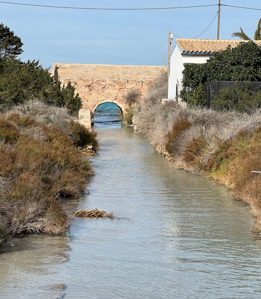 Ocean water combines with the lake water of Estany Pudent on Formentera. This area, with it’s underground freshwater springs, provides the greatest biodiversity for watching birds such as black-necked grebes, flamingos, storks and shelducks. Nearby is Ses Salines (the salt flats) that are very important in the recent history of the island because of the salt industry.